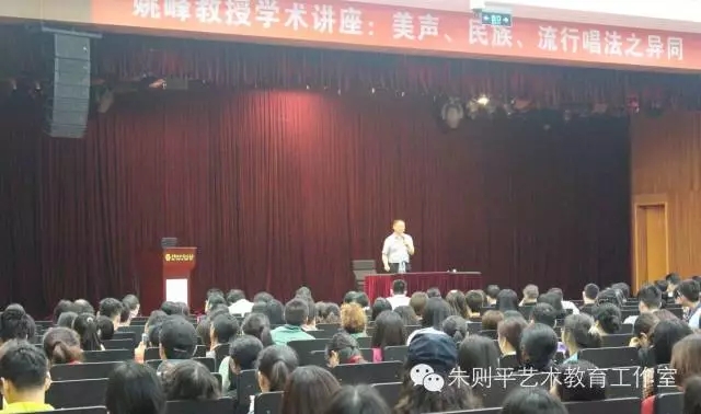 由广东省音乐家协会普通音乐教育艺术委员会、广州市教育研究院联合主办的著名声乐教育家、作曲家姚峰教授的声乐学术报告会《美声、民族、流行唱法之异同》于47日在广州国际会展中心大报告厅隆重举行。来自北京、湖北、湖南、广西和省内广州、深圳、东莞、中山、珠海、佛山、湛江、清远、河源、肇庆、阳江等多地的专业音乐家、中小学音乐教师、广州地区星海音乐学院等高校专家、教授、战士歌舞团专业音乐工作者等近一千人参会。
